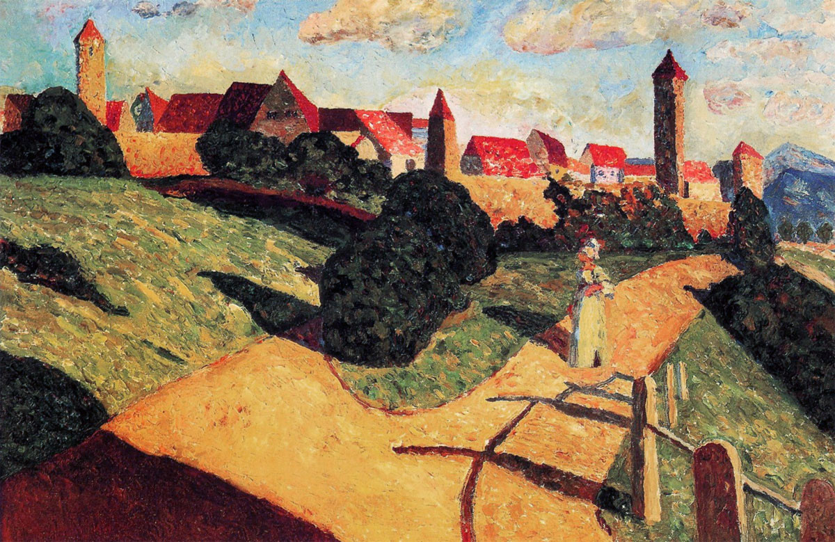 2. The period after leaving school. It soon appeared to me that past ages, having no longer real existence could provide me with freer pretexts for the use of color, which I felt within myself. Thus, I chose first medieval Germany, with which I felt a spiritual affinity…I also created many things from within myself…freely from memory and according to my mental picture. I was far less in my treatment of the ‘laws of drawing’…Thus, objects began gradually to dissolve more and more in my pictures.
